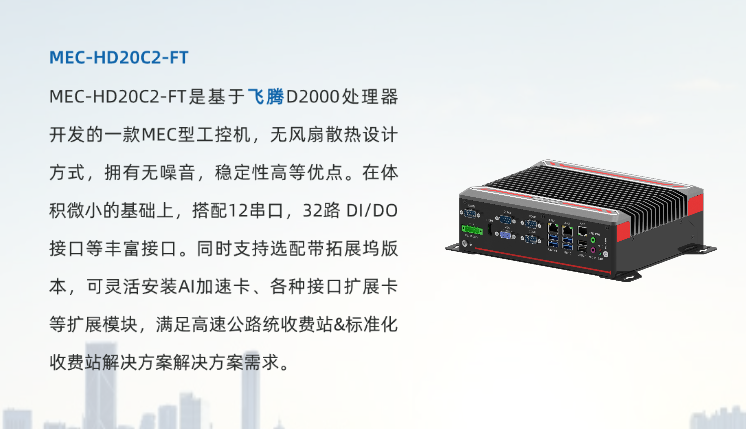 方案圍繞智慧化、集約化理念,車道端配置自助發(fā)卡/繳費(fèi)設(shè)備,車道外設(shè)IP化設(shè)備,通過內(nèi)置MEC-HD20C2-FT進(jìn)行車道外設(shè)協(xié)議轉(zhuǎn)換,實現(xiàn)車道外設(shè)實時、集中監(jiān)控,促進(jìn)車道減員增效。